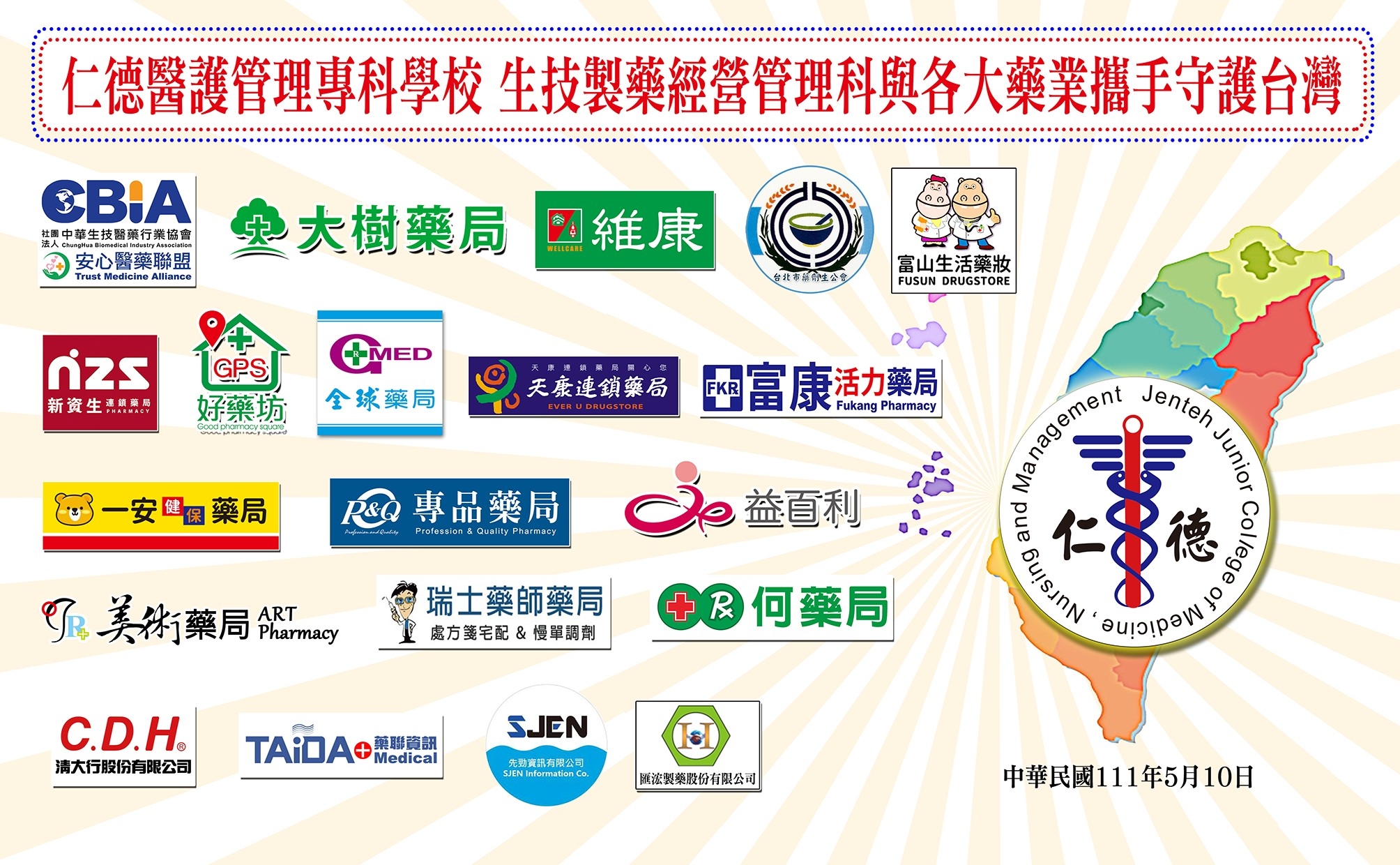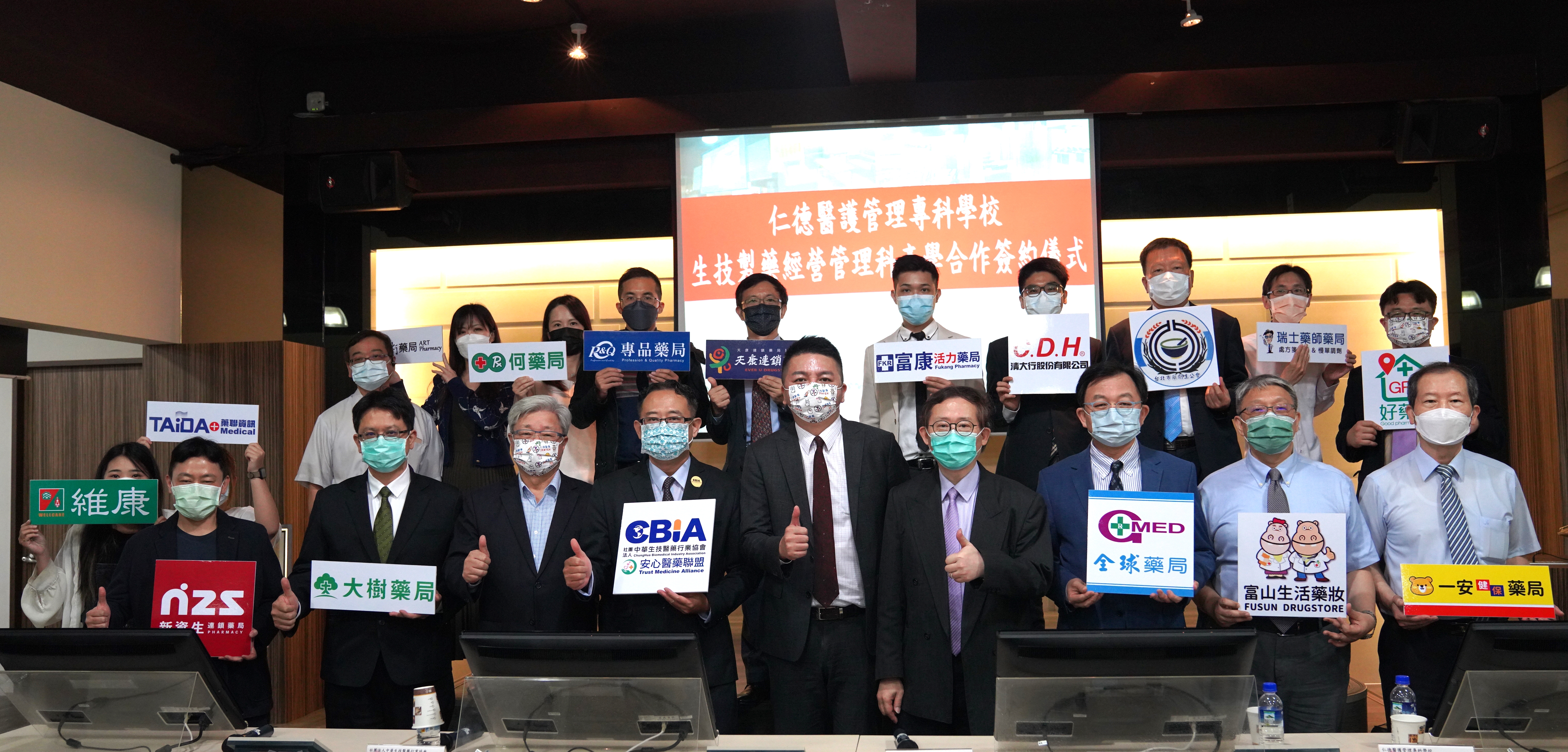 仁德醫事專科學校生技製藥經營管理科、中華生技醫藥行業協會、台北市藥劑生公會與各大連鎖藥局、生技製藥廠於5月10日簽署合作備忘錄,在目前新冠疫情方興未艾之際,此次的簽約活動更是別具意義;中華生技醫藥行業協會理事長陳建州藥師表示,仁德醫專是知名藥劑生的黃埔搖籃,近年創立的生技製藥經營管理科秉持藥學優良傳統,課程合乎產業需求,為了此次的產學合作簽約,本協會、台北市藥劑生公會與安心醫藥聯盟共同號召連鎖藥局與生技醫藥廠商,就是為了替台灣未來生技醫藥界投注更多新的活力及量能,使台灣生技醫藥產業能更加的蓬勃發展,讓企業永續經營。