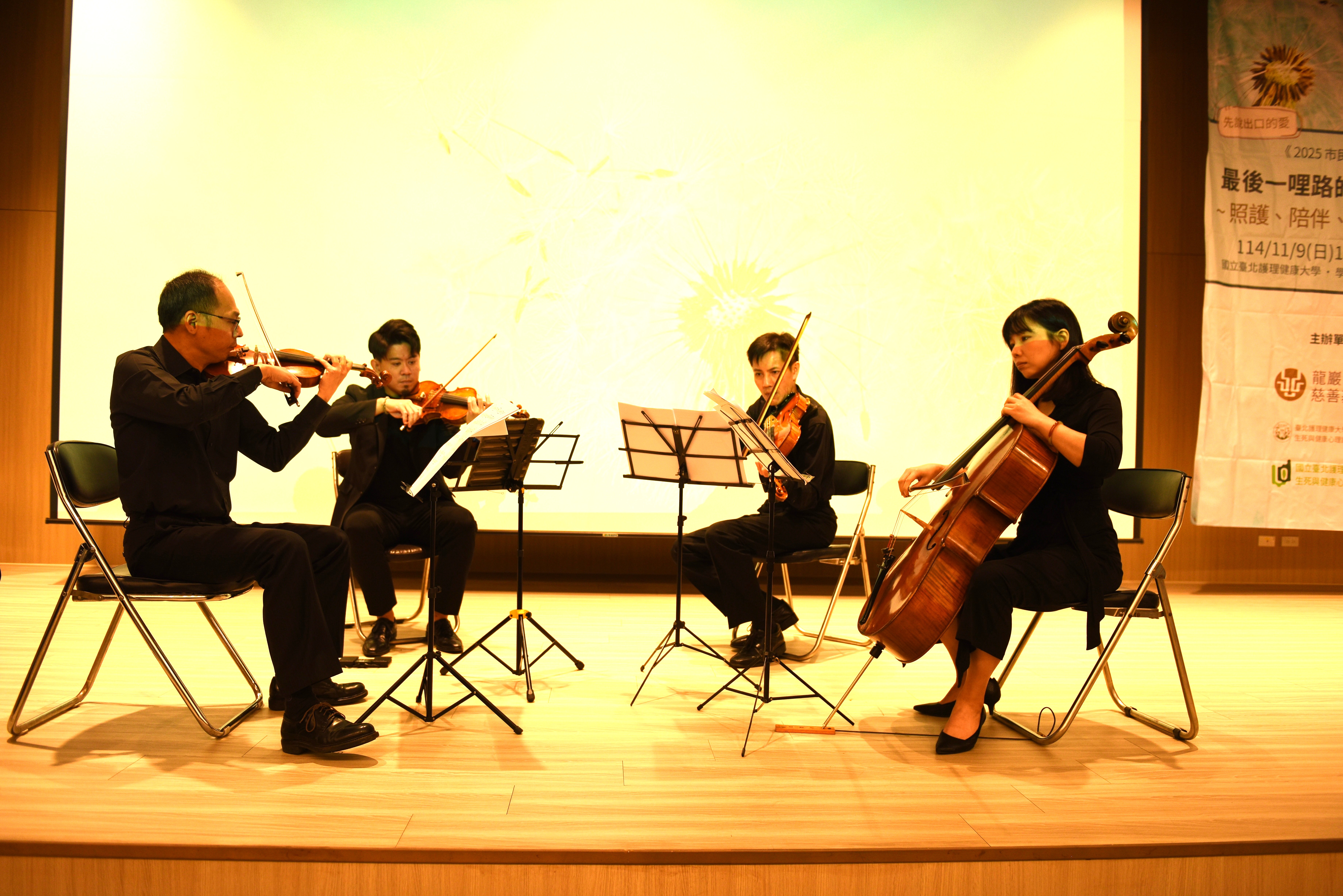 ▲開埸表演由克里蒙納獨奏家室內樂團帶來弦樂四重奏「微光之音」。(國北護生諮系提供)